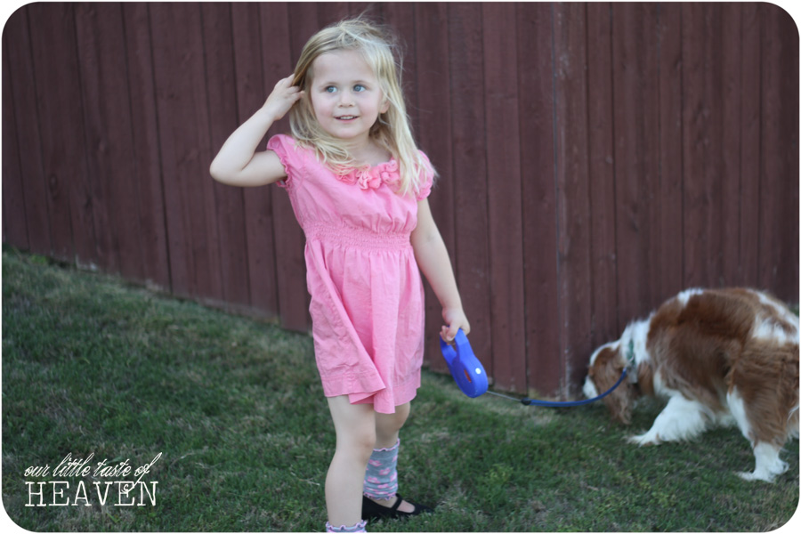 Rhys got stuck staring at whatever it was. She thought it was very exciting. She did this for most of the walk it seemed (and, yes, I realize her shoes don't match...we were limited on shoes/clothes):